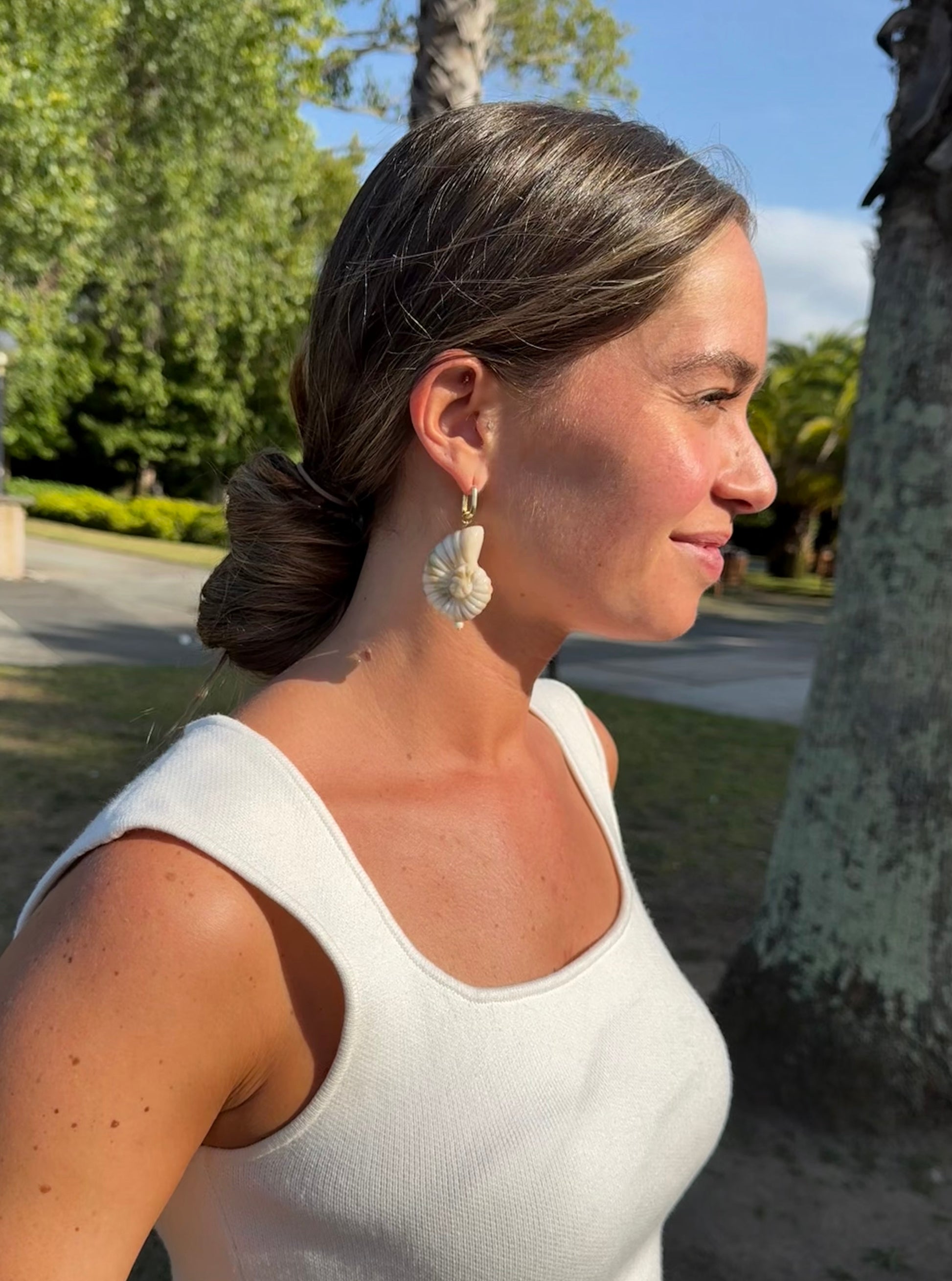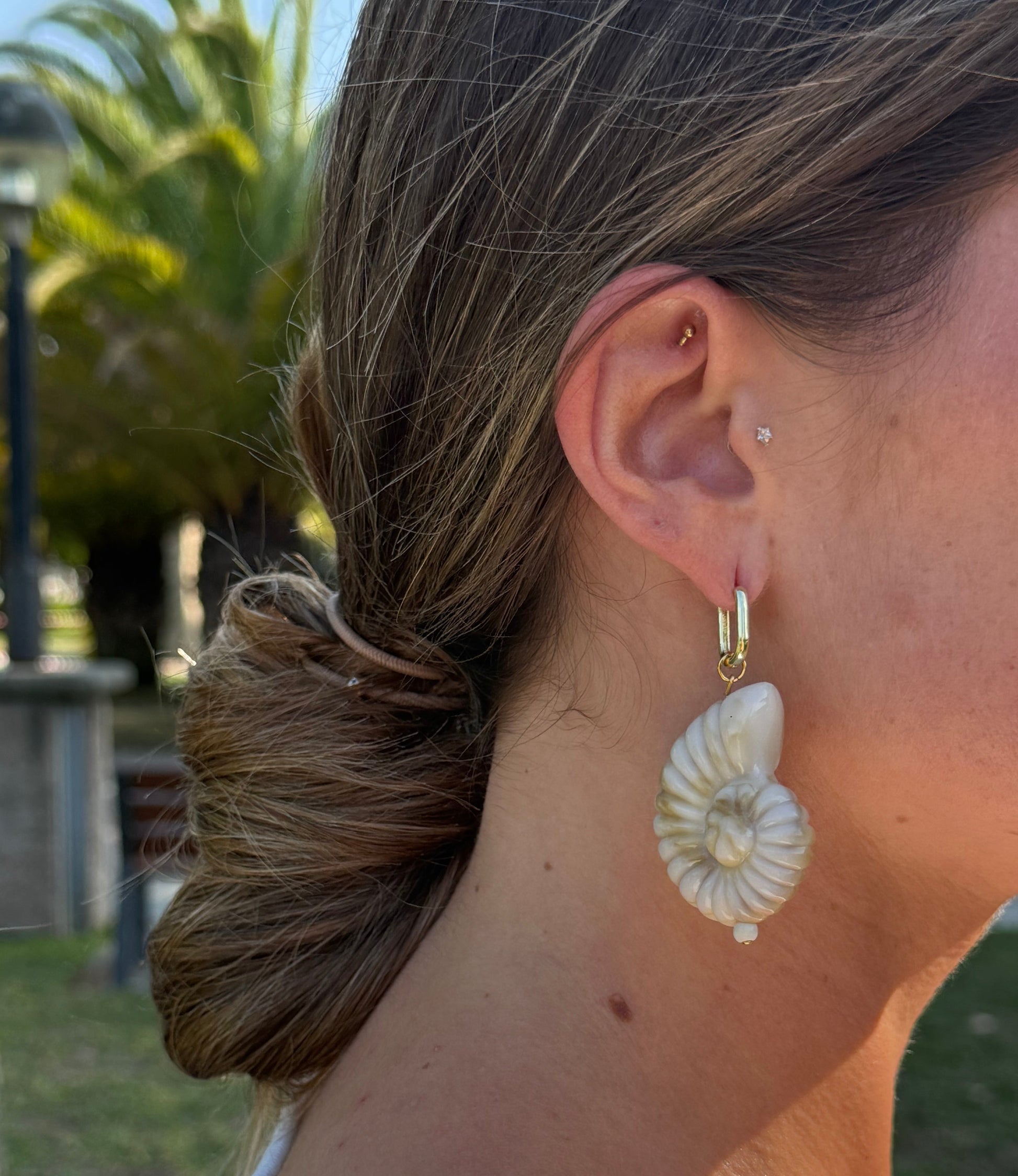 Pendientes de acero inoxidable en dorado con caracol marino beige