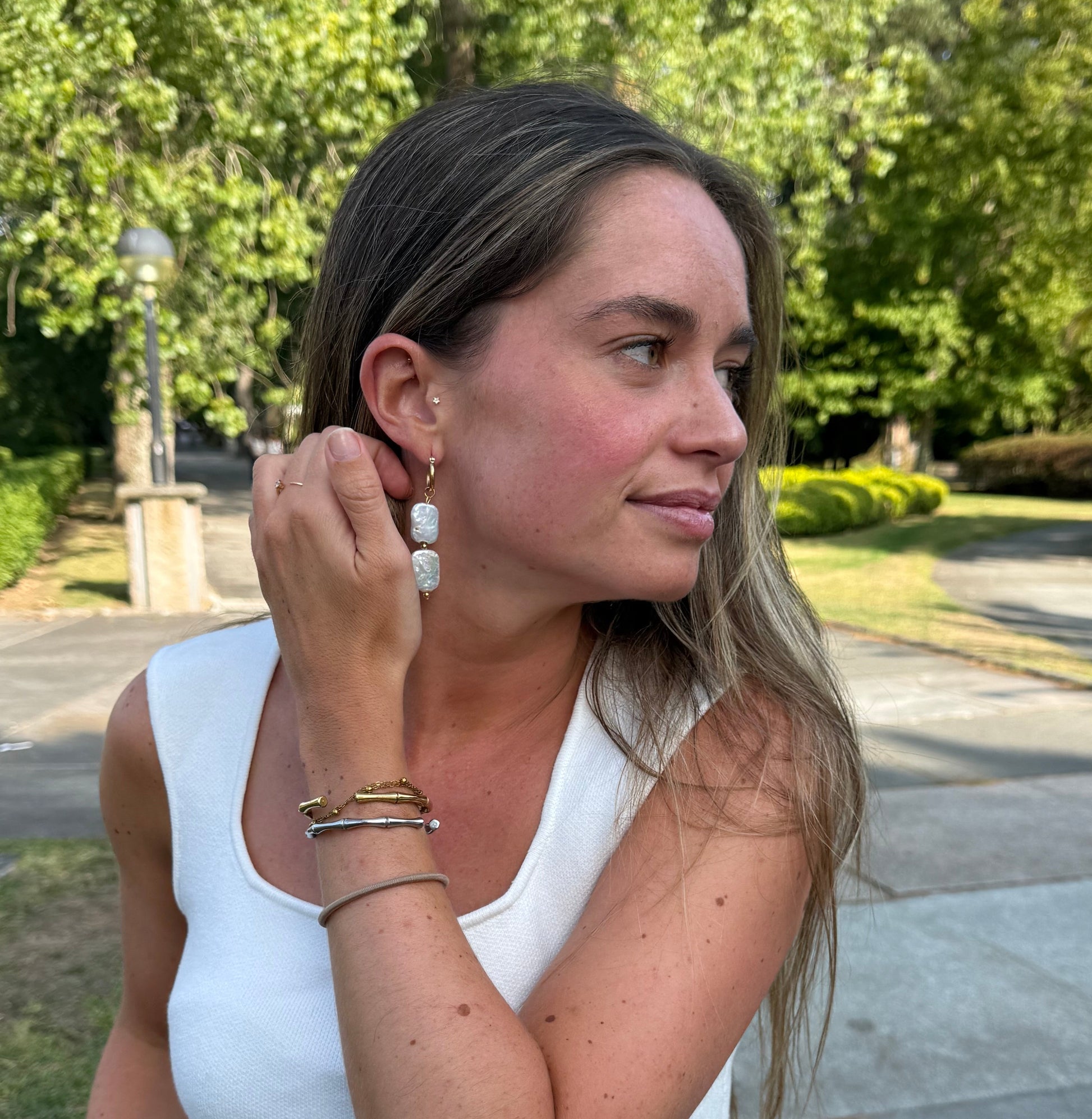 Pendientes de acero inoxidable el color dorado con perlas cuadradas